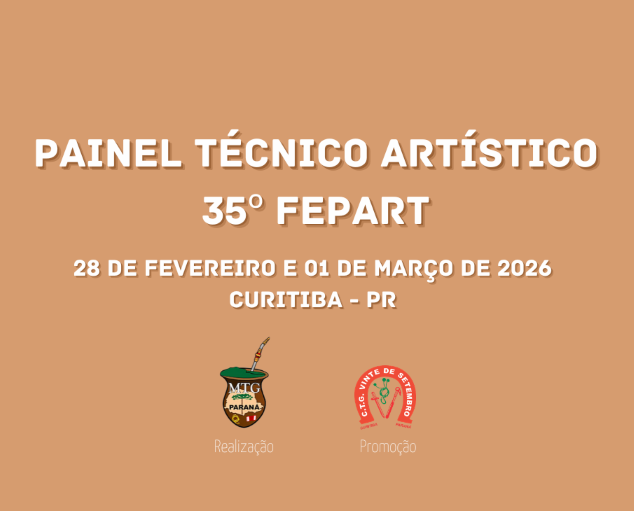 Convidamos todos a participarem do Painel Técnico Preparatório para o 35° FEPART, painel este que será realizado nos dias 28 de Fevereiro e 01 de Março de 2026, nas dependências do CTG Vinte de Setembro, 1ª RT, em Curitiba – PR.